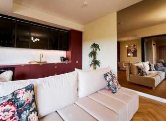 Choć apartament został zaprojektowany z myślą o wynajmie, jego standard wykończenia nie odbiega od wnętrz prywatnych.